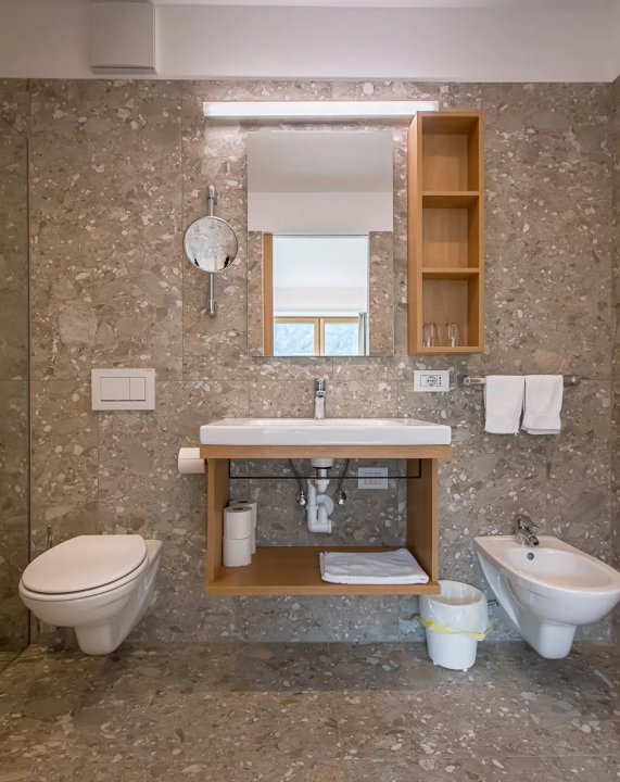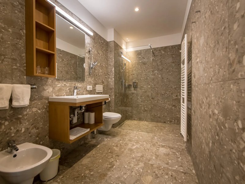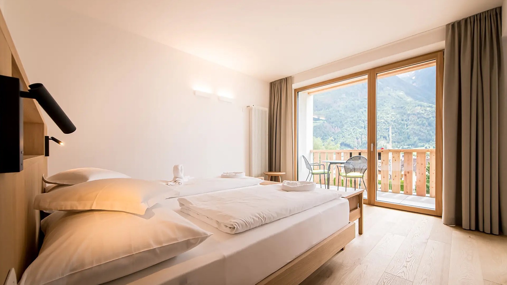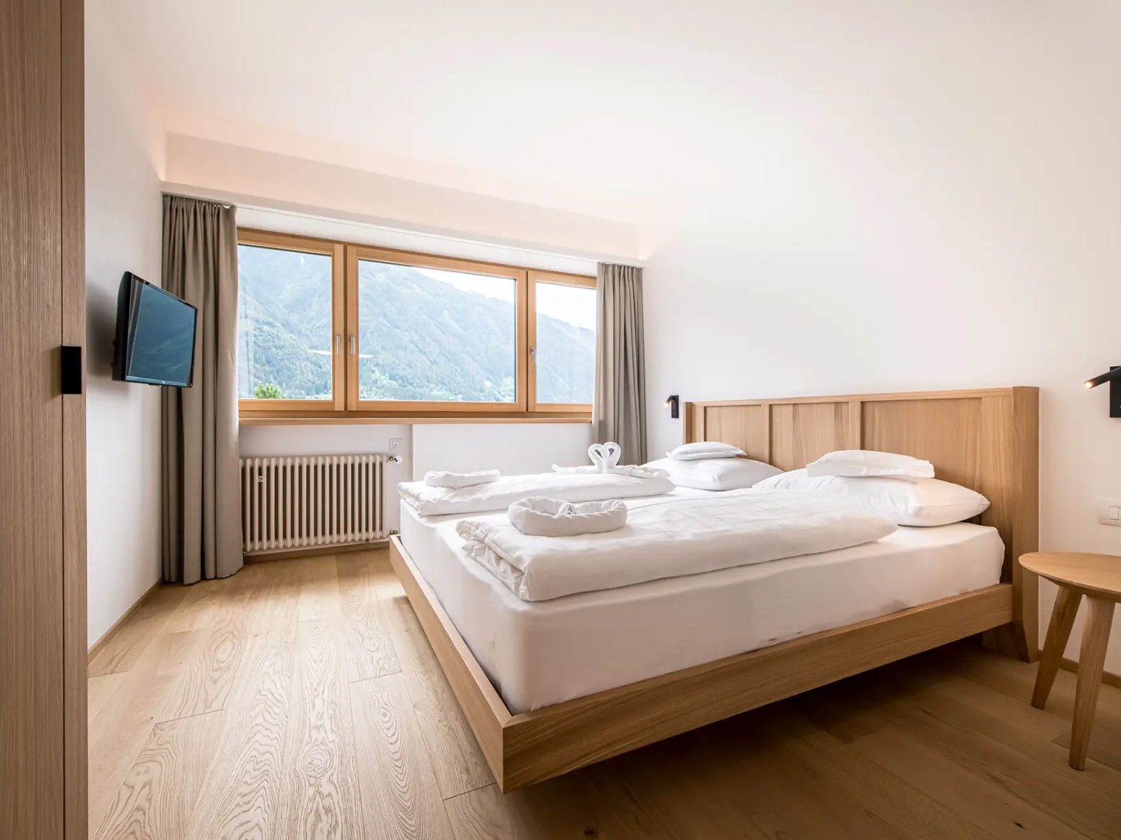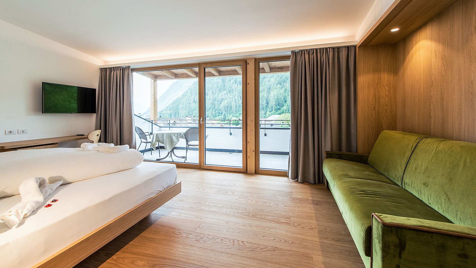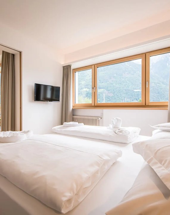 Nuove camere con circa 30 m² con vista sulle montagne della Valle Aurina. Letto matrimoniale e divano estraibile, ideale per 2-4 persone, ampia terrazza con area salotto, pavimento in legno, armadio, bagno con doccia, WC, bidet e asciugacapelli, grande TV, cassaforte, Wi-Fi. Camere al 3° piano solo accessibile tramite scale (ascensore al 2° piano).